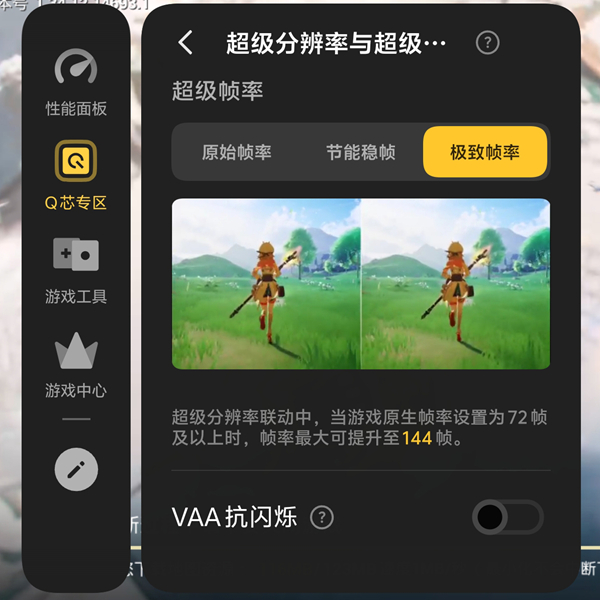 作为KPL赛事的合作品牌,iQOO一直不仅仅是游戏性能的极致化代表,同时在游戏功能的支持和体验完善方面走在前列,其中自研电竞芯片Q2自然成为了软硬件你协同的关键,它能将画质增强与超帧链路独立处理,为主芯片分担压力,实现超分+超帧并发,画面清晰度和流畅度同时提升,远处的景物细节更加锐利,人物移动更加顺滑。