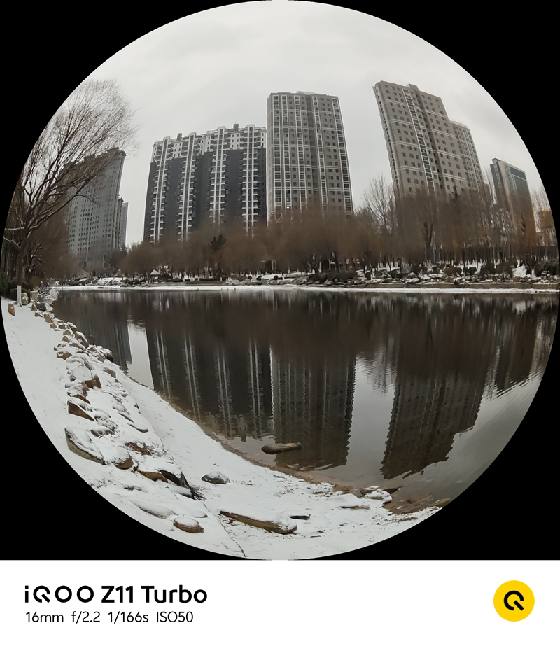 此外,这款手机支持4倍无损变焦,我们在92mm等效焦段下拍摄远处景物时,细节依然清晰,没有明显的模糊和噪点,可见其成像能力并非简单的缩放所企及。由于iQOO Z11 Turbo本身并没有提供微距功能,但是在4倍无损长焦的加持下,同样可以实现长焦微距的效果,实拍雪后竹叶脉络清晰可见,雪凝冰晶也同样呈现出不错的锐利度。
