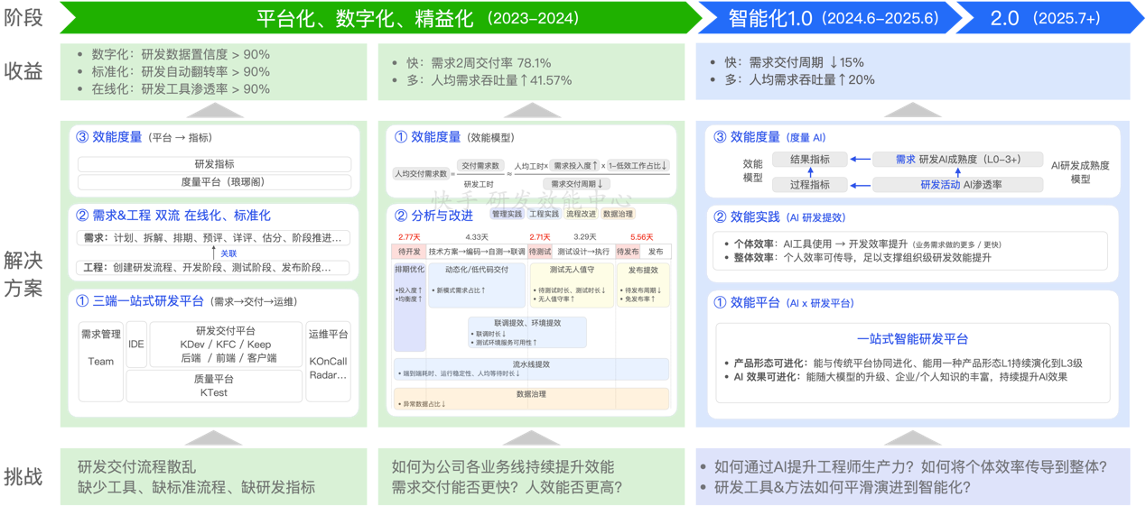 快手的经验是——先打牢平台化、数字化、精益化的基础,再用 AI 系统化改造研发范式,让个人的提效能真正汇聚成组织的提效。