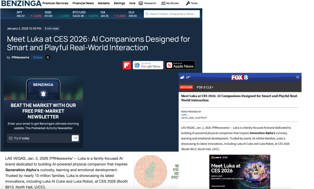 此外,Eric"s Tech World发布的《Luka Pet Robot Is Here! | CES 2026 FIRST LOOK REVIEW》以及Techolay、Dariusz Tech等博主的开箱与现场实测,通过真实的物理交互演示去识别绘本、对话互动,让“物理AI”的概念在C端用户中实现广泛传播。