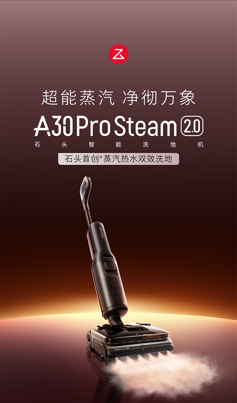 石头洗地机A30 Pro Steam 2.0上市:180℃活性蒸汽,不止于清洁,更守护健康