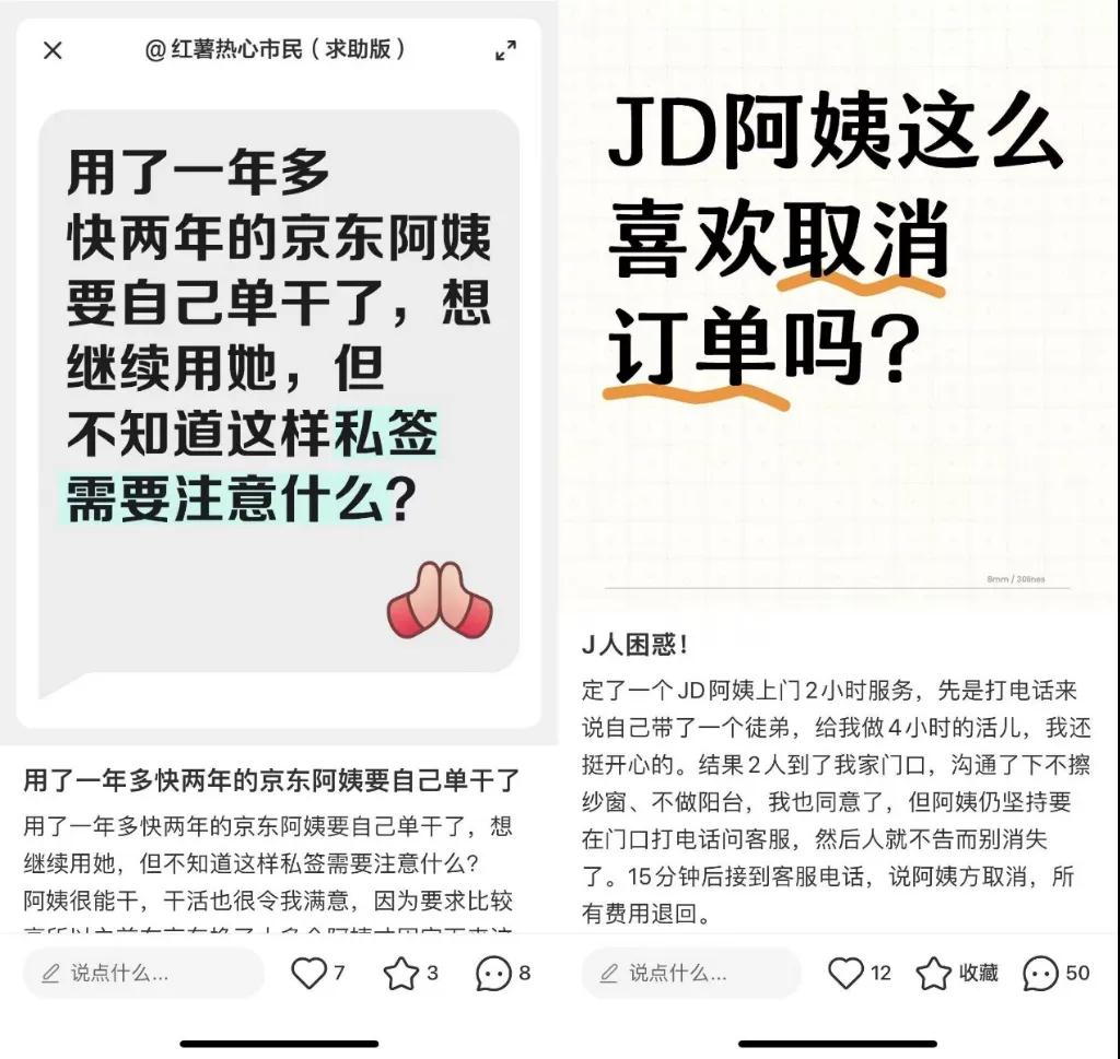 一直到2021年疫情后,京东才正式推出了自营的家政服务品牌“京东家政”。去年,京东家政更发布十万人招募计划,计划将家政业务拓展至100个城市。