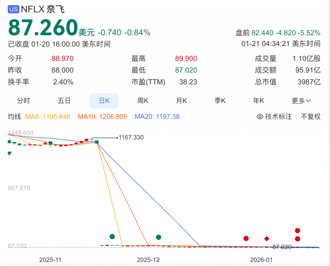 1月20日,奈飞在最新财报中披露,公司与华纳兄弟探索修订了合并协议,交易改为全现金支付,替代此前现金加股票的混合方案,收购总额维持在827亿美元不变。