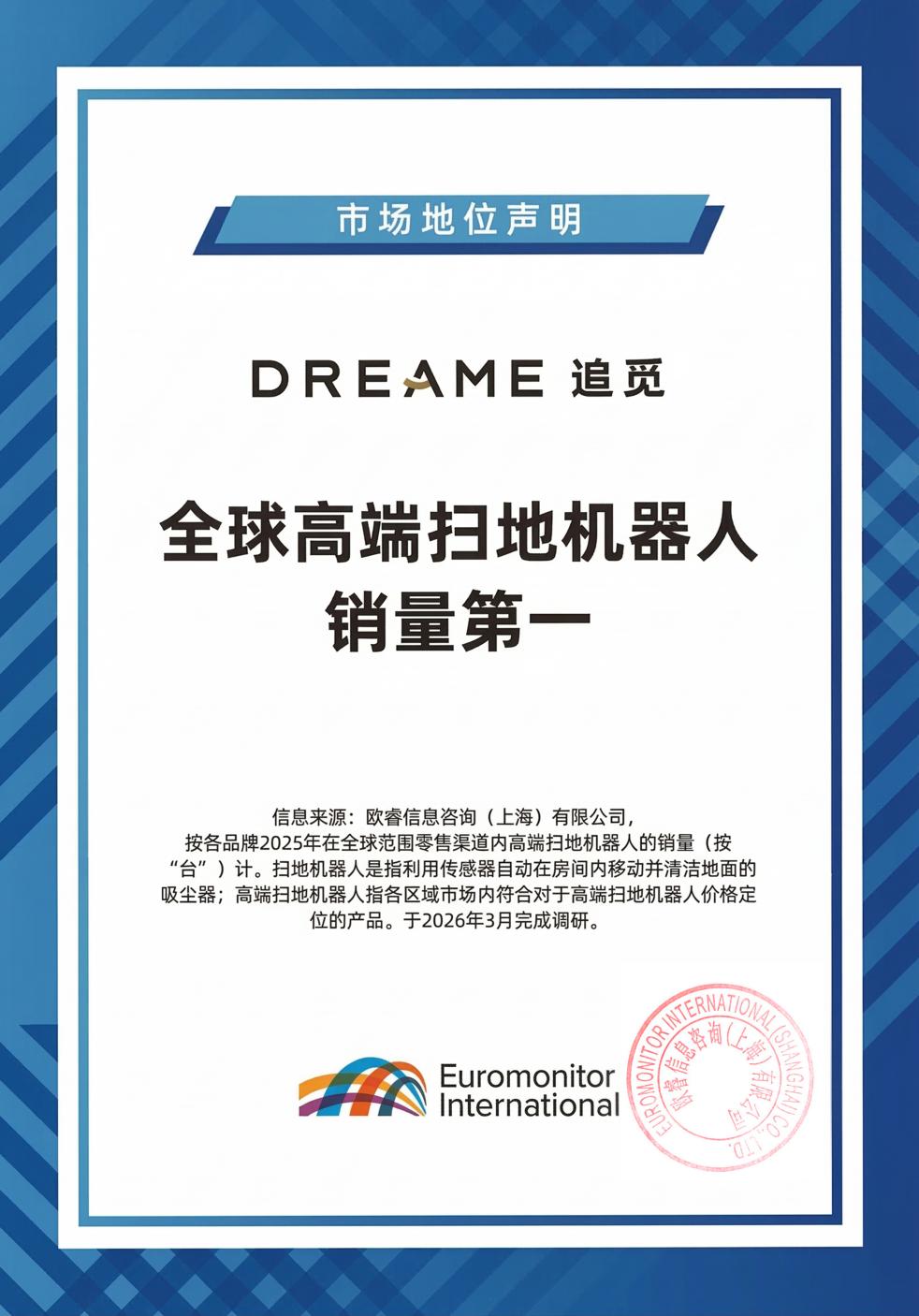 欧睿国际权威认证:追觅全球高端扫地机器人销量第一!