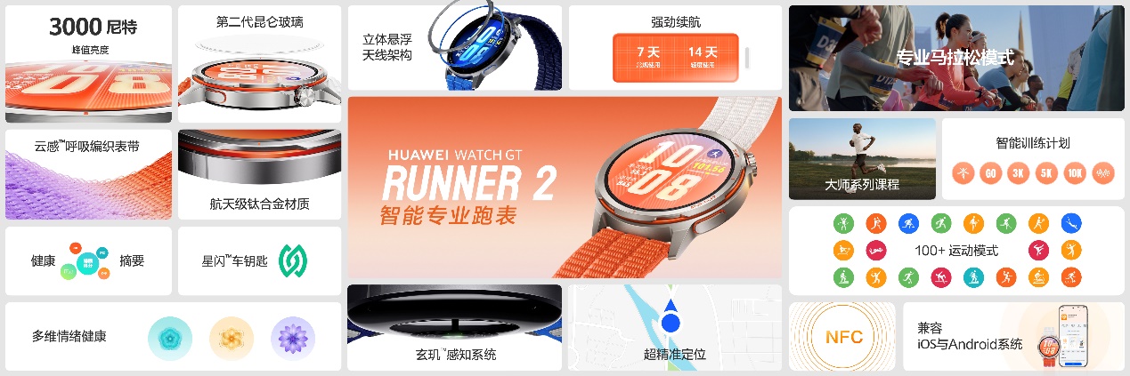 HUAWEI WATCH GT Runner 2首发价2588元,现已开启预售。4月10日正式开售,届时,用户可在华为商城、授权电商、华为体验店、授权零售商购买。