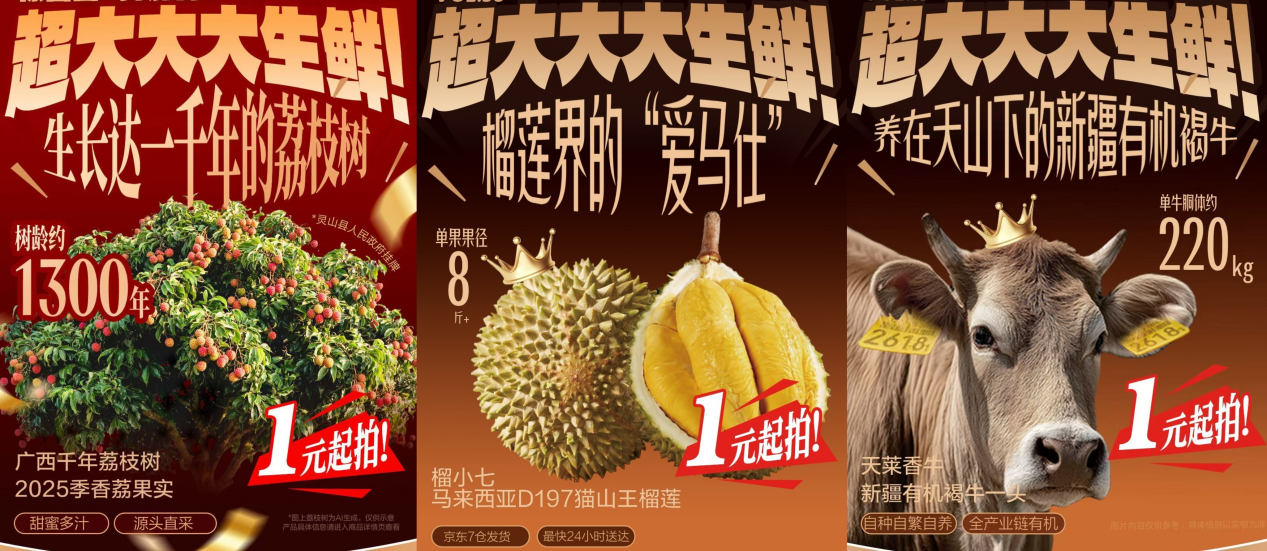 事实上,自2025年起,京东生鲜“超大生鲜”拍卖活动已汇聚超500款新奇特生鲜好物,吸引超30万人参与。稀奇好玩的商品、新颖有趣的玩法,让消费者既能“玩”又能“省”。去年,千年荔枝古树全年采摘权以13101元拍出,折算每公斤仅约32元;源自马来西亚黄金产区的猫山王榴莲以551元成交,不到市场价8折;新疆有机和牛礼盒市场价6000多元,最终以1004元拍出,不到2折。许多消费者抱着好玩的心态而来,却意外发现成交价远低于市场售价,收获了意想不到的“捡漏”体验。