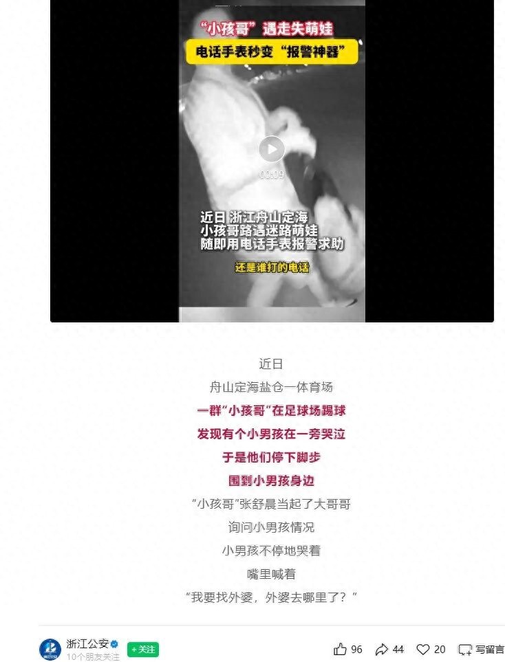 社交平台被一个儿童电话手表用户的真实分享刷屏,浙江舟山的“小孩哥”发现有个小朋友迷路了,随着用电话手表报警求助,然后警方找到他们,网友纷纷评论“小孩哥帮助小孩哥”,儿童电话手表已成为很多儿童安全与沟通的重要工具,再次引起很多网友共鸣。