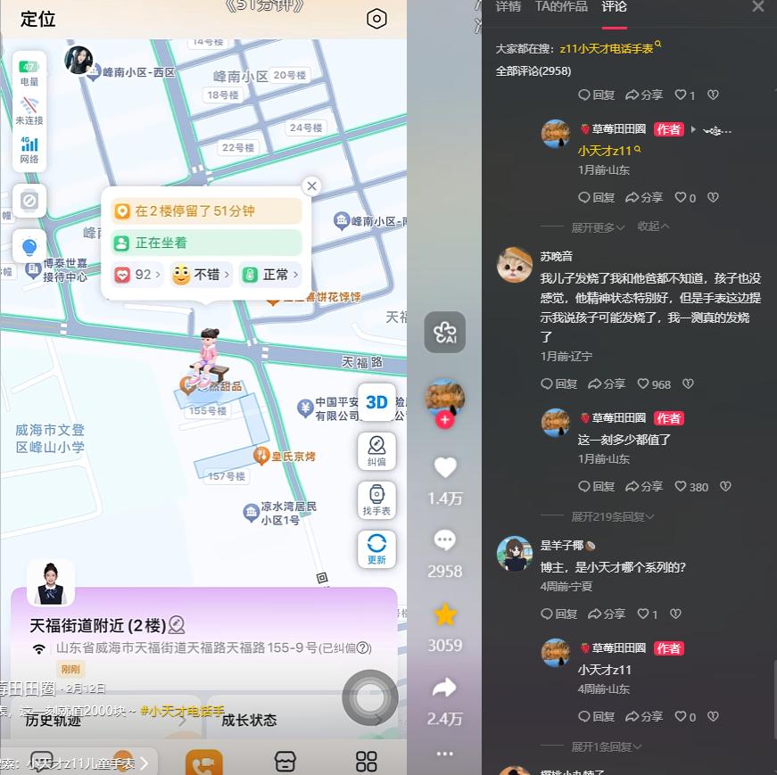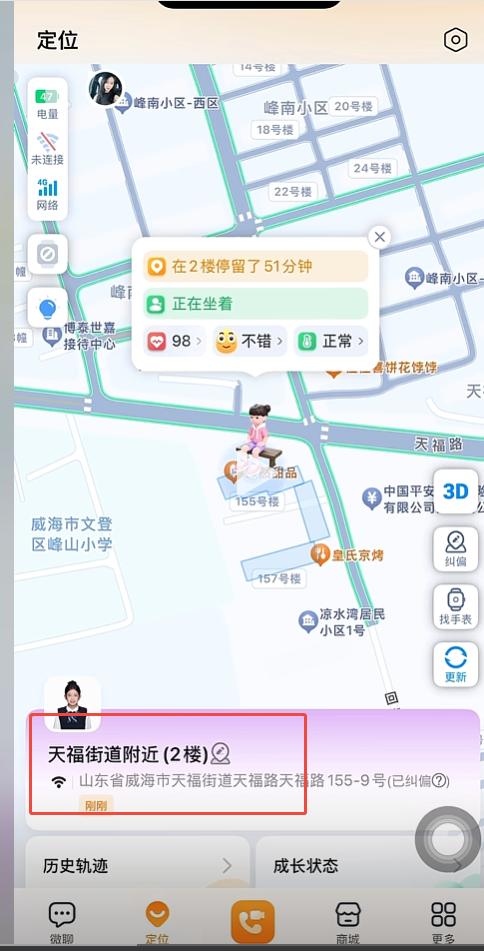 更贴心的上学守护功能,家长预设好学校和家庭地址,孩子到校、离校、到家都会自动提醒,把监护做到细致入微。这种贴合儿童场景的设计,区别于成人手表需求,也为后续楼层定位的研发埋下了伏笔。