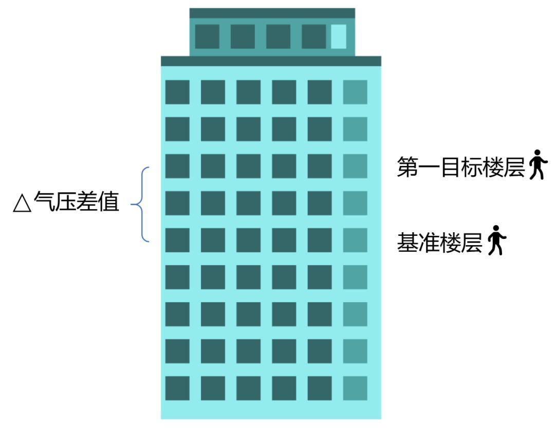 根据气压计采集到的气压数据变化,可以判断设备所处的楼层是否发生变化。用户进行垂直移动(坐电梯或爬楼梯),到达新的稳定位置,设备会记录新的对应气压值,即“终点气压值”, 利用这个高度差,系统就能准确计算出设备最后到达的具体楼层。