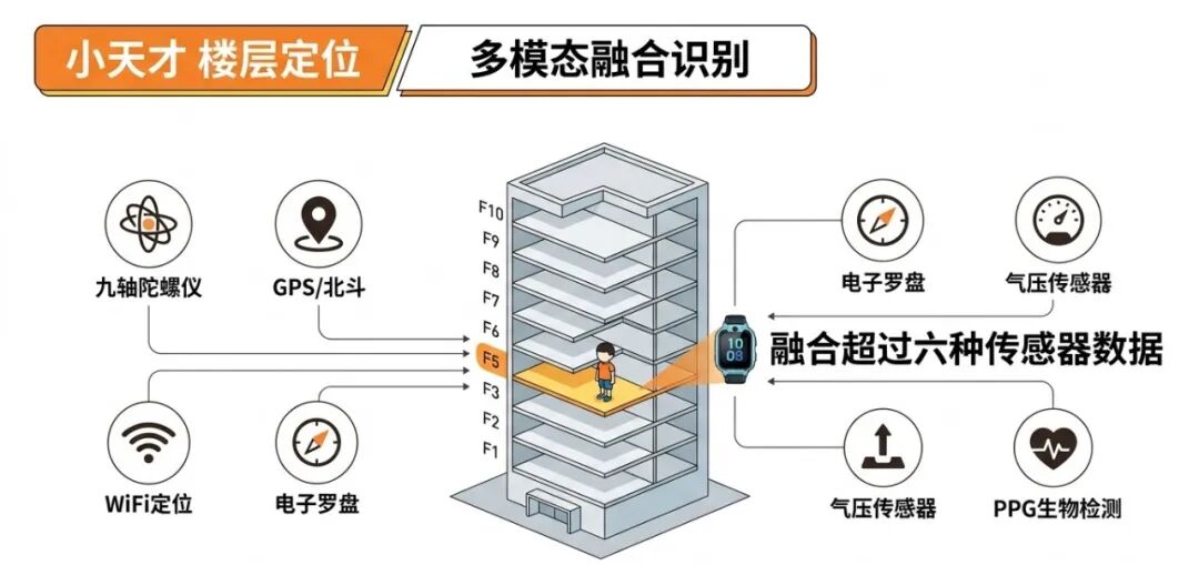 因此,小天才的解法,并不是“增加一个传感器”,而是构建一套多模态融合的楼层定位。