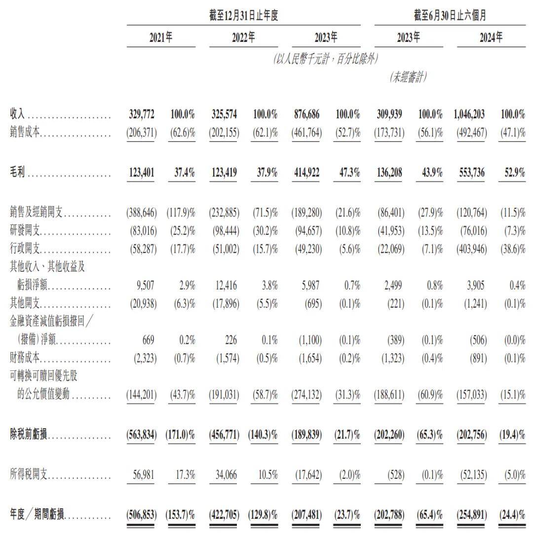 布鲁可2024年上半年营收为10.46亿元,上年同期营收为3.1亿元;毛利为5.54亿元,上年同期的毛利为1.36亿元;期内亏损为2.55亿元,上年同期的期内亏损为2.03亿元。