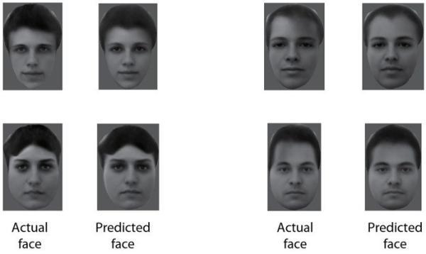 最终,Tsao放弃了这些人类自己能想到的比较具体的元素,改由计算机找出人脸识别的密码。通过分析一组200张经计算机调整后的真人照片,计算机给出了50个可以描述人脸间差别的数学维度。这些参数并不是在简单描述具体的某个脸部器官,其中一半与形状有关,比如两眼间距或发际线宽度,另一半涉及肤色、皮质等要素。
