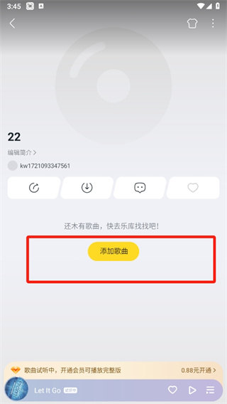 4、点击新创建的歌单中就可以选择“添加歌曲”。