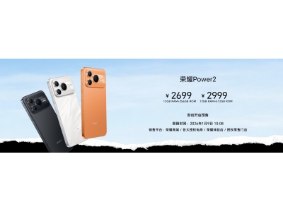 2026年1月6日 星期二 驱动中国昨夜今晨 荣耀发布Power2手机 荣耀于2026年1月5日正式推出Power2手机。该机型配备10080mAh第四代青海湖电池,支持80W有线快充及27W反向充电,整机厚度控制在