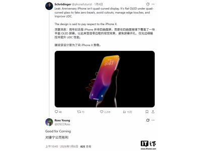 IT之家 1 月 10 日消息,消息源 @phonefuturist 于 1 月 4 日在 X 平台发布推文,分享了一份据称源自三位苹果工程师的 Telegram 对话记录,透露了关于 2027 年苹果“20 周年纪念版 iPhone”的相关