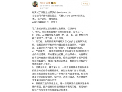日前,字节跳动最新视频生成模型Seedance 2.0在即梦、豆包、小云雀等产品开启内测。凭借多模态输入、超强参考能力等亮点,Seedance 2.0很快引爆网络,引发国内国外广泛关注。游戏科学
