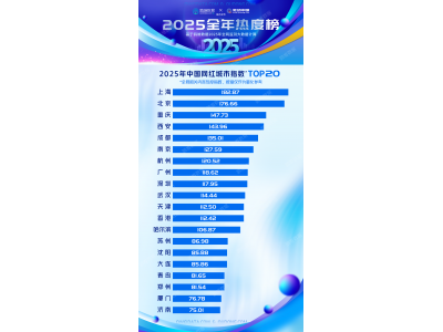 近日,国内知名数据研究平台鸥维数据联合驱动中国发布的【2025全年热度榜】系列子榜单引发全网热议,其中《2025年中国网红城市指数TOP20》榜单凭借全维度的流量监测与专业量化分析