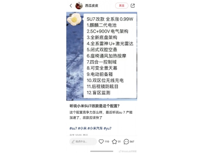 今日要闻一览: 小米SU7改款在即:12项重磅升级或引全系涨价1万元 Meta被曝去年160亿美元收入来自诈骗广告,用户日接150亿条欺诈信息 手握全球芯片命脉!台积电宣布给全球近8万员工