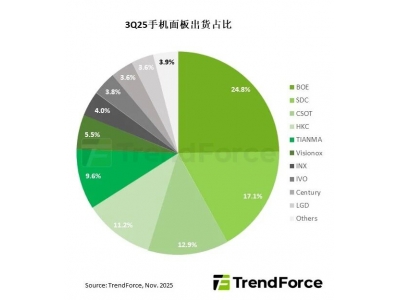 2025第三季度智能机面板出货量:国屏一哥京东方全球第一 为iPhone稳定供货