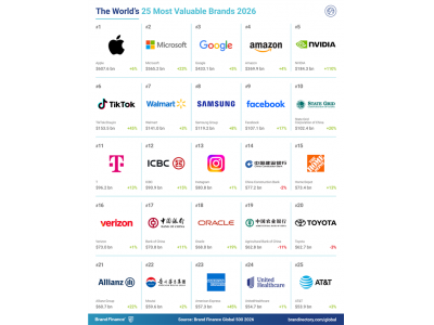 2026全球品牌价值500强榜单发布:苹果稳居第一