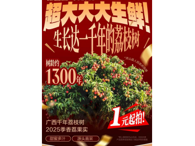 去年夏天,广西灵山一棵千年荔枝古树,被京东生鲜搬上了拍卖,引发了一场跨越时空的舌尖竞拍。 这株拥有1300年历史、高达15米的唐朝古树,被当地人誉为荔枝界的茅台、可以吃的古