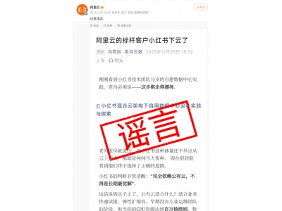 12月25日消息,刚刚,阿里云官方指出“阿里云的标杆客户小红书下云了”一文为谣言。 根据此前公开报道,2023年11月,小红书发起迁云项目——计划一年内,把小红书的数据湖搬上阿