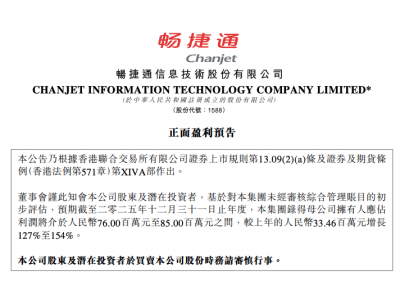 1月14日消息,畅捷通(HK:1588)发布正面盈利预告,预期2025年度录得母公司拥有人应占利润将介于人民币7600万元至8500万元之间,较上年的人民币3346万元增长127%至154%。 畅捷通表示,利