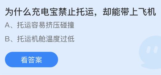 为什么充电宝禁止托运,却能带上飞机?这是2024年蚂蚁庄园6月12日庄园小课堂的问题,下面为大家详细介绍2024年6月12日今天蚂蚁庄园课堂小鸡饲料答案。