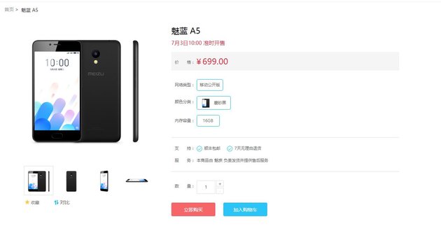 不久前,魅族在海外正式发布了魅蓝5c,而随后一款魅族的新机获得了工信部的入网许可。同时根据参数分析来看,这款手机很可能就是魅蓝5c的国行版本,主打超低售价。果不其然,今天魅族官网悄悄上架了一款魅族新机:魅蓝A5,售价为699元,首批只有“磨砂黑”配色可选。
