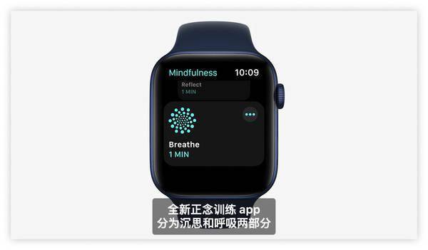 发布会上还发布了全新的 watchOS 8,在 watchOS 8 首先对手表中的呼吸功能进行了升级,推出了冥想功能,全新设计了呼吸时的动画。还增加了健康方面的呼吸速率监测功能,用户可以通过 Apple watch 监测睡眠现在支持检测呼吸速率,帮你提升更细致的睡眠报告,进而帮助你增强睡眠质量。