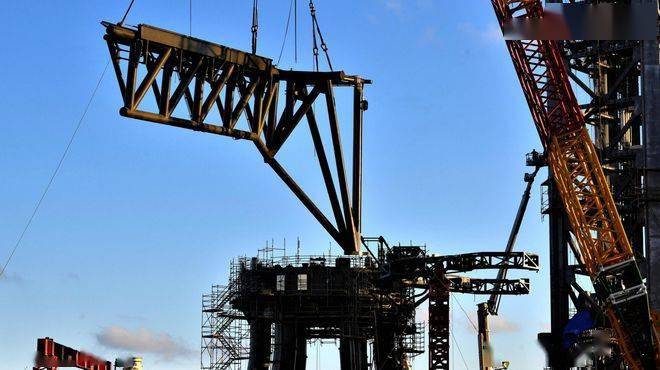 也许是受当地强风影响,右机械臂目前继续悬挂在离最终将安装它的臂架只有几米远的起重机上,而左臂还没有移动到最近到位的第二台起重机上。