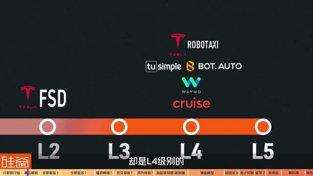 我们之后提到的Waymo和Cruise,以及侯晓迪做的无人卡车都属于L4级别,特斯拉FSD属于L2级别,但马斯克号称的特斯拉Robotaxi,却是L4级别的。